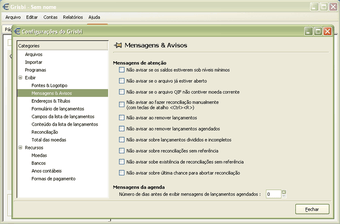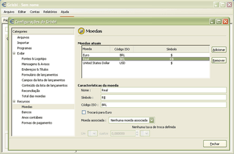 Para começar, clique em Editar>Preferências e selecione uma moeda padrão. Por exemplo, real brasileiro ou escudo português. Cadastre contas, cartões bancários e pessoas ou empresas com as que mantém alguma relação comercial. Anote qualquer movimento financeiro no Grisbi e programe avisos e lançamentos para não ficar no vermelho.